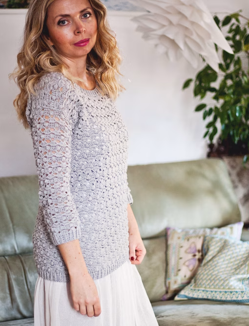 Crochet PATTERN – Pretty Bobble Sweater (sizes S, M, L, XL, XXL) (English only)