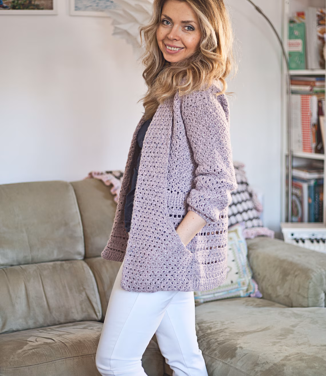 Crochet PATTERN – Shawl Pocket Open Front Cardigan (English only)